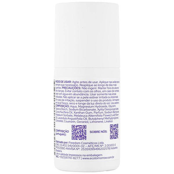 Sinta a leveza de um cuidado natural que respeita sua pele e o meio ambiente. O Desodorante Roll-On Eco Tomorrow combina a ação purificante da melaleuca com a suavidade relaxante da lavanda, proporcionando frescor e bem-estar durante todo o dia.
